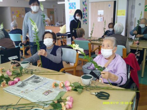 特定施設でもフラワーアレンジメント教室が開催されました。