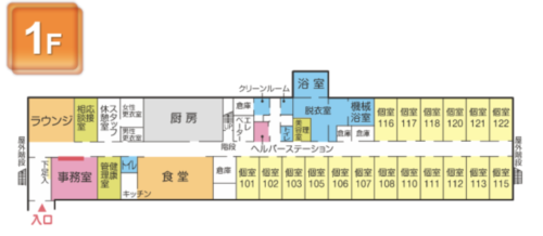 また、サービス付き高齢者向け住宅基準の建物のため、有料老人ホーム基準より広い居室が特徴的です。
