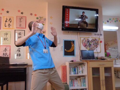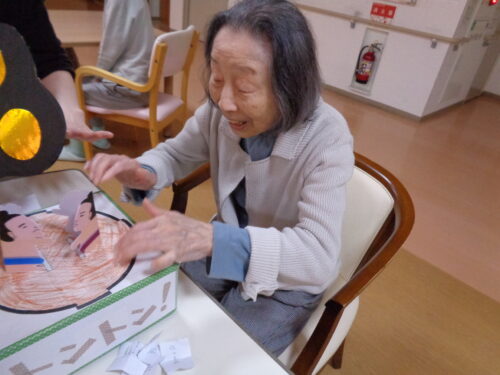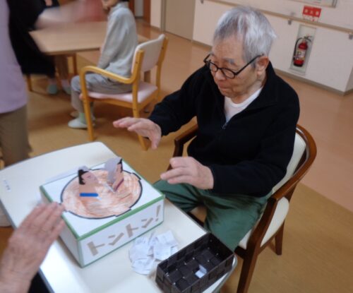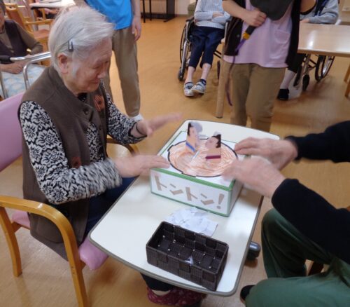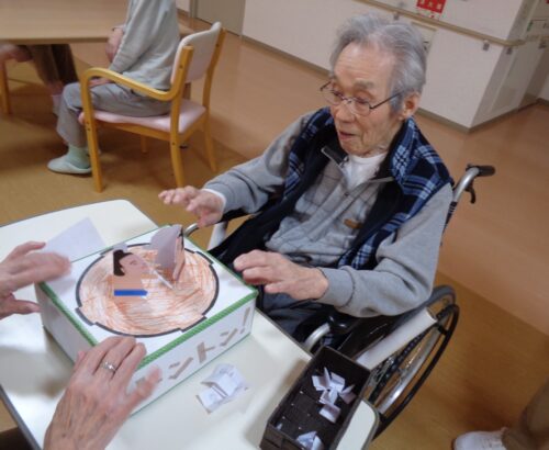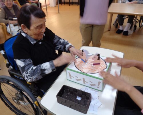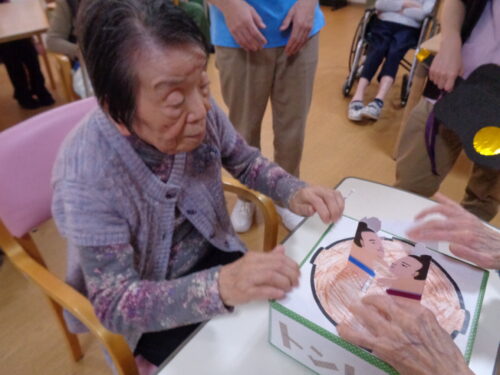 2Fでも対戦中の入居者様をぐるっと囲み、「頑張れ~✨」「いけ~!!」など