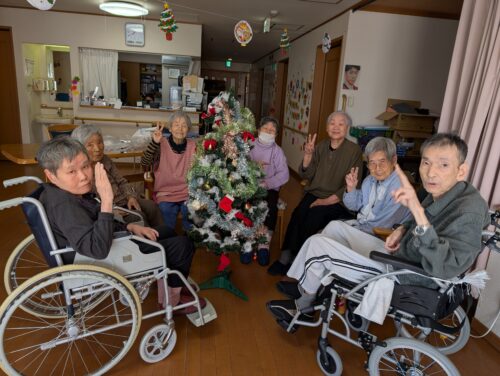 さわやかグループホームあゆみ ☆完成しました!クリスマスツリー☆ 2024-12-08 2024-12-02 いよいよ大詰めになってきました。 最後にキラキラのモールを飾って完成!!! 皆で頑張って飾ったので 記念撮影 パシャリ 「もう年末かな?」 とびっくり。 スタッフもびっくり。 あっという間に年末ですね。 元気に年越ししましょうね。