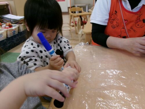 「せんせい、ペンとって~」