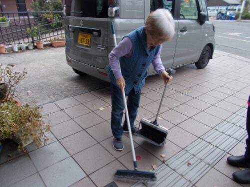 さわやかはーとらいふ西京極 😊いつも笑顔をあり🎶 2024-12-03 2025-01-06 9月の末にご入居され、施設での生活にも慣れて来られ、同じ階のご入居者様達と毎日楽しく過ごされております😊 エプロンを畳むのを手伝って下さったり、フロアの掃除を一緒にしてして下さったりといつも私たち職員を助けてくださてます🥰 先日は玄関の掃除を一緒にしてくださりました🎶 🍂どこからともなく飛んできた落ち葉を綺麗に掃除をして下さいました🍃 🌹掃除の後には園芸レクリエーションに参加をしていただきました🌻 私たち職員に沢山😁笑顔😃を下さりありがとうございます。