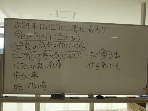 さわやか室蘭弐番館 2階 2日活力朝礼♪ 2024-12-03 2024-12-03 皆様こんにちは♪ 昨日の様子をお届けします 9時からラジオ体操です 頭の体操は健康のために気を 付けている事教えて頂きました 素敵な一日になります様に☆