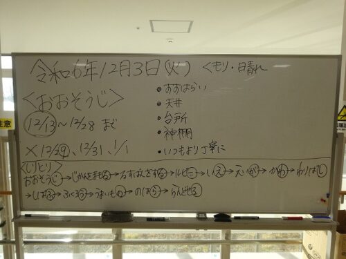 さわやか室蘭弐番館 2階 3日活力朝礼♪ 2024-12-04 2024-12-03 皆様こんにちは♪ 昨日の様子をお届けします 日付の確認後はラジオ体操です 腕が綺麗に伸びています 頭の体操は師走の豆知識と しりとりを行いました 笑い声溢れる一日になります様に☆