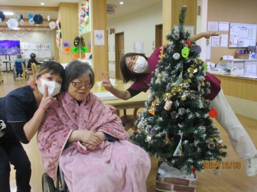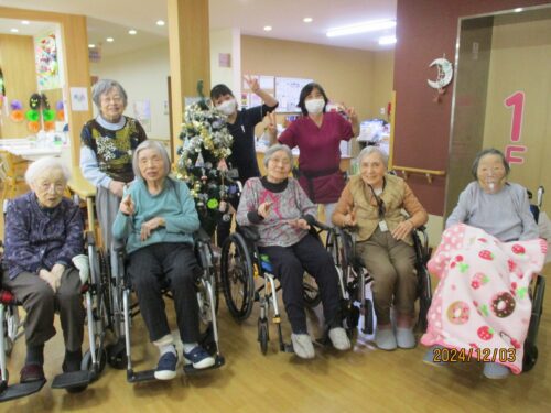 1Fのご入居者さまも2人のナースとメリークリスマス