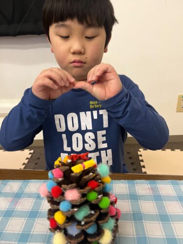 さわやか愛の家 さいじょう館 製作遊び 2024-12-04 2024-12-04 こんにちは😊 さわやか愛の家さいじょう館🏠です。 今日は松ぼっくりの クリスマス🎄ツリー作りを 行なっています。 カラフルツリー❤️ みんな集中しています✨ 【おやつタイム】 【帰りの支度】 ジャンバーのファスナーを閉めています✨