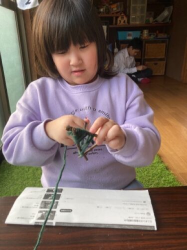 余った枝を組み合わせてオリジナルの作品を作る児童もいました♪