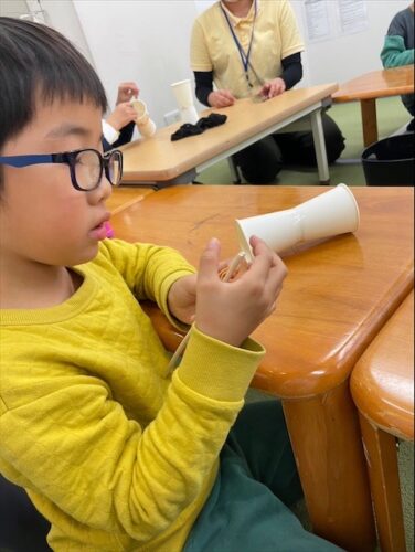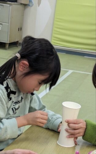 あかいわ館では、紙コップフリスビーを制作活動で行いました!