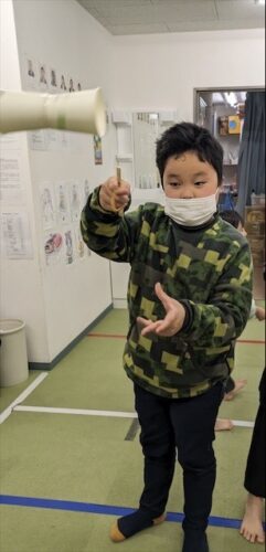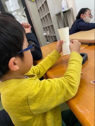 飛ばしたら、紙コップが自分の方に戻ってくるのが面白かったようです(^^)