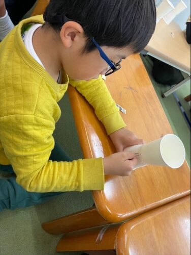 まずは紙コップを底同士でセロハンテープでくっつけます!