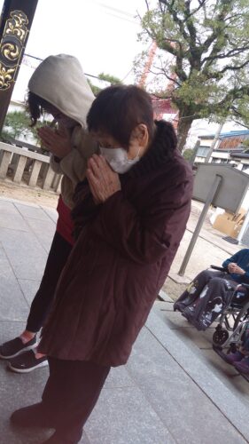 さわやか海響館 えびす祭りに参加しました<Part2> 2024-12-05 2024-12-05 こんにちは。さわやか海響館です。 最終日もお天気がよかったので、えびす祭りに参加しました。 お参りして、梅が枝餅を食べて帰りました。また、外出レクを行っていきたいと思います。 担当 宮崎