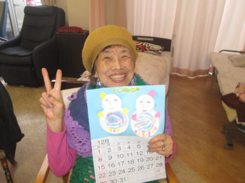 さわやか行橋弐番館 カレンダー製作③ 2024-12-05 2024-12-05 完成したカレンダーと素敵な笑顔です✨ 12月に入りすごく寒くなりましたが、寒さに負けずにあと少し今年も一緒に 楽しく過ごしましょう😊