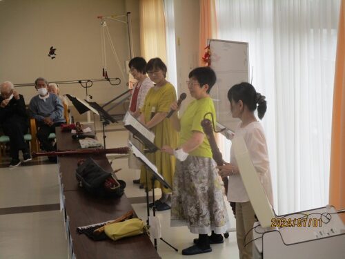 リコーダーの演奏はとても心地よく、皆様方耳を傾けて聞いておられました。