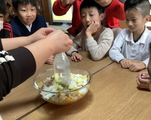 果物については何が入っているか分かったようですが、牛乳寒天は分からなかったようで