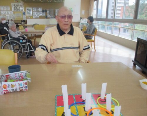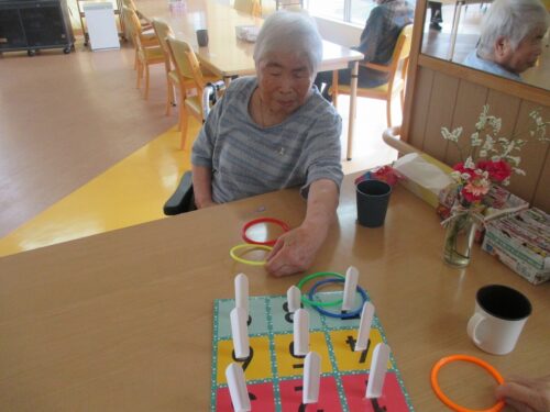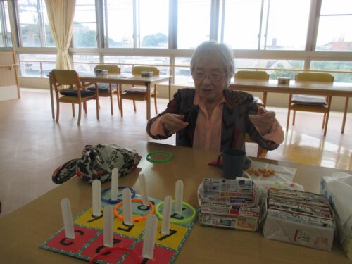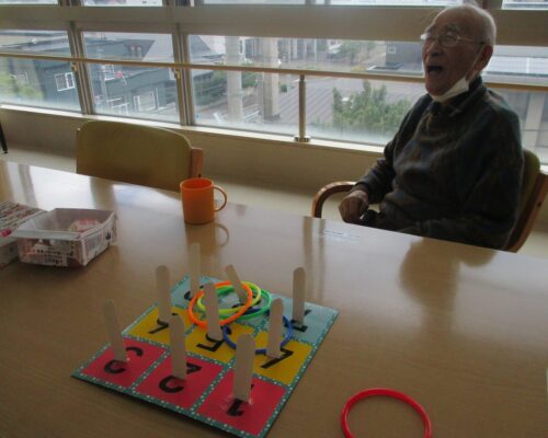 さわやか室蘭館 3F輪投げ♪ 2024-07-03 2024-07-03 皆様こんにちは♡ 本日は、3Fの輪投げの様子をご紹介します。 座りながらできるのが良いですね。 皆様中々の腕前です。 たくさん入ったので嬉しいですね。 「えいっ!」 真剣に参加されました。 大盛り上がりの午後レクとなりました!