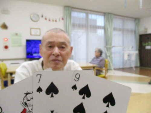 写真を貼る真面目な表情‼トランプゲームに興じる真剣な表情‼楽しんでますよ...感謝‼
