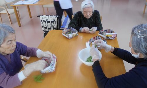 グループホームあおいうみ 夕食のお手伝い 2024-12-07 2024-12-07 本日の夕ご飯は豆ごはんでした~!(^^)! 下準備の豆むきのお手伝いをして頂きました。 『これなかなか出来ん』や『こうやったら簡単よ』など 教え合いながらしてくれました。 GHあおいうみ 原