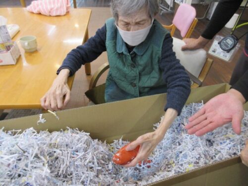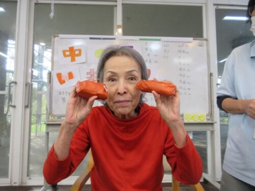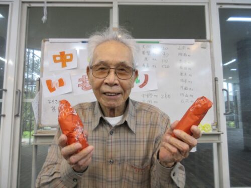 さわやかレークサイド中の原 芋ほり大会(LS中の原デイサービス) 2024-12-07 2024-12-07 本物の芋ほりに行く事はできないので、職員手作りの芋ほりならぬ、芋探しをして頂きました。(笑)お芋も手作りです。 皆様、一生懸命探しております!!(笑) 沢山のお芋の収穫に皆様笑顔でした。喜んで頂けたようで良かったです😊 LS中の原デイサービス 名越