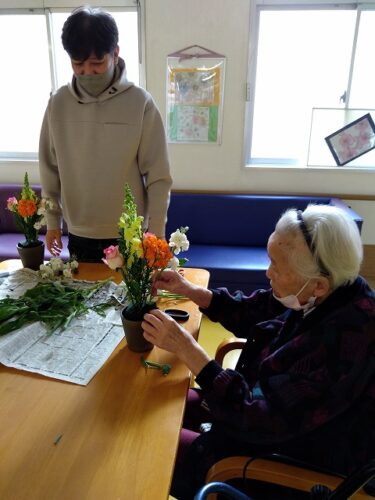 さわやか和布刈館 フラワーアレンジメント 2024-12-10 2024-12-10 みなさまこんにちは。 今日はフラワーアレジメントの様子をお送りします。 皆様真剣に取り組んでいます。 お花はきれいなので、とても喜ばれています。 はい綺麗なアレンジが出来ました。 はなやかに飾ることが出来ました。