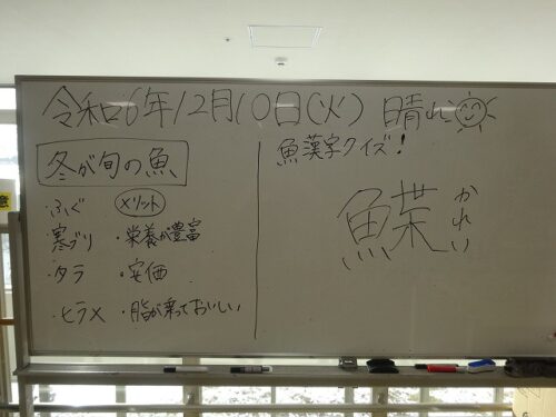 さわやか室蘭弐番館 2階 10日活力朝礼♪ 2024-12-11 2024-12-10 皆様こんにちは♪ 昨日の様子をお届けします 元気の源 ラジオ体操です 身体を大きく動かします 頭の体操は魚の読み方お答え頂きました🐟🐡 楽しい一日になります様に☆