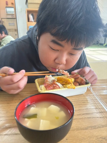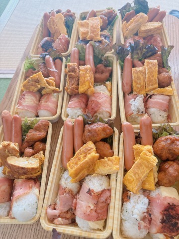 職員の用意したおかずと一緒にお弁当のように容器に詰めました🥰