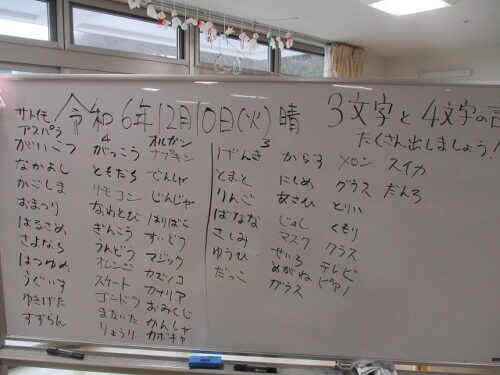 さわやか室蘭弐番館 3階 10日活力朝礼♪ 2024-12-11 2024-12-10 皆様こんにちは♪ 昨日の様子をお届けします 一日のスタートはラジオ体操です 手が床に届きそうですヽ(^o^)丿 ぶれてしまいました😢 頭の体操は文字遊びです 素敵な一日になります様に☆