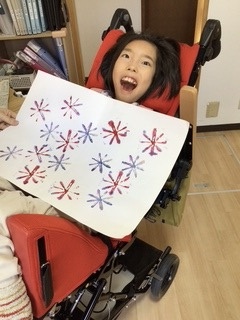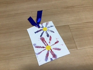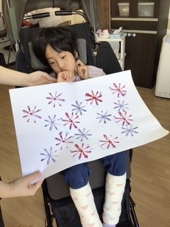 毛糸をグルグル巻いたスタッフお手製のスタンプでみんな思いっきりペタペタ🤩