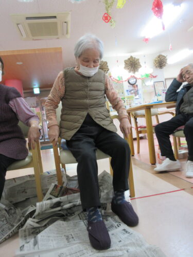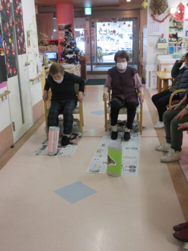 二回戦目は新聞紙の先に厚紙の筒を置き