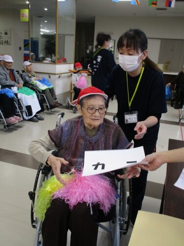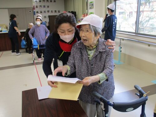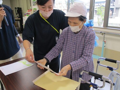 入居者様が、テーブルの上に置いてあるお題を確認し、