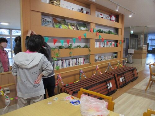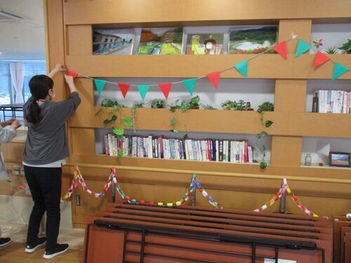 職員が1階ホールの飾り付けを行いました