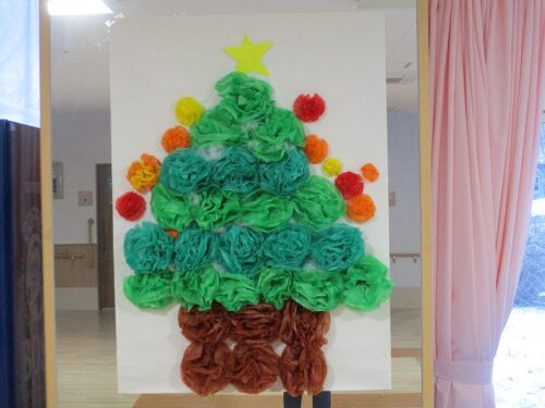 入居者様が製作したツリーも飾っています