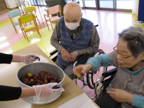 さわやかリバーサイド西脇 さつまいもレク 2024-12-12 2024-12-12 こんにちは。さわやかリバーサイド西脇です。 本日、施設内で採れたサツマイモを蒸して利用者様に提供しました。みなさん「美味しい」「もっと食べたい」と言いながら喜んで食べられました。大好評でした。