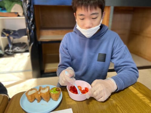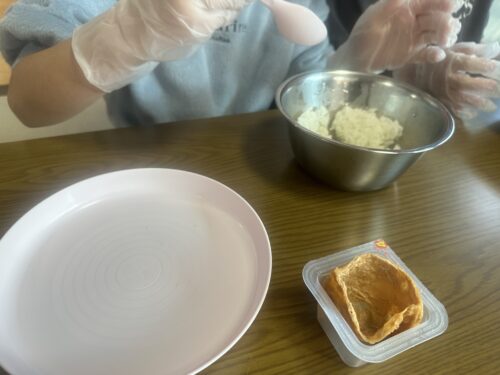 いなりを広げてカップへ😁