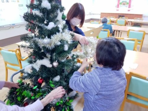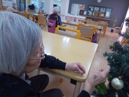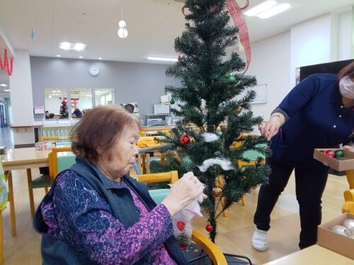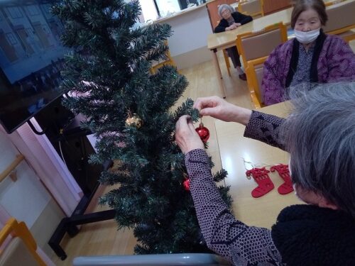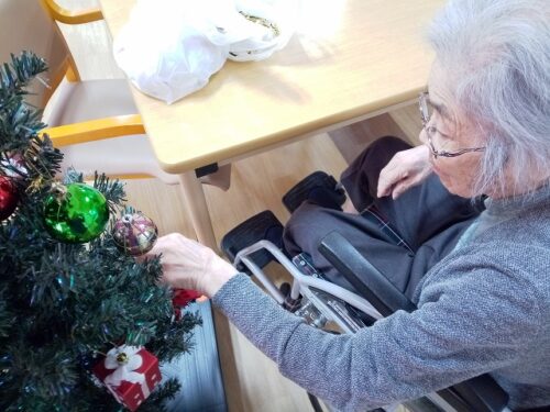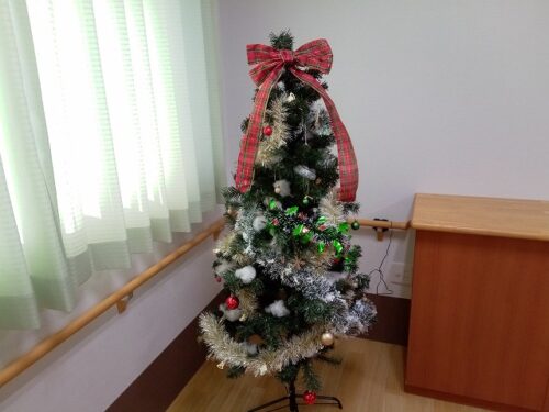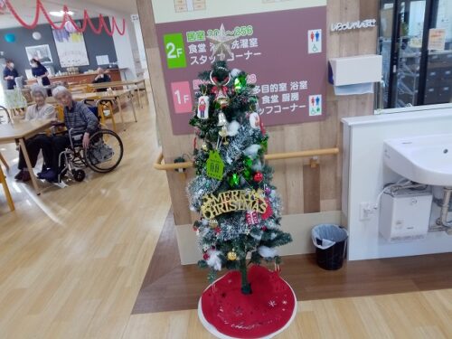 ご入居者様に飾りつけをお願いさせていただきオリジナリティーあるツリーとなっております(o^―^o)