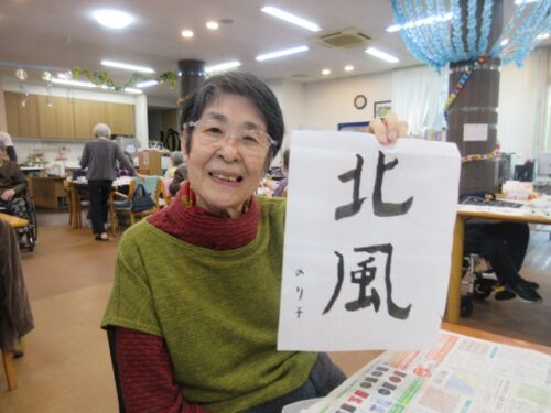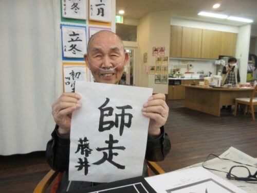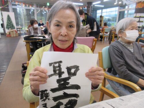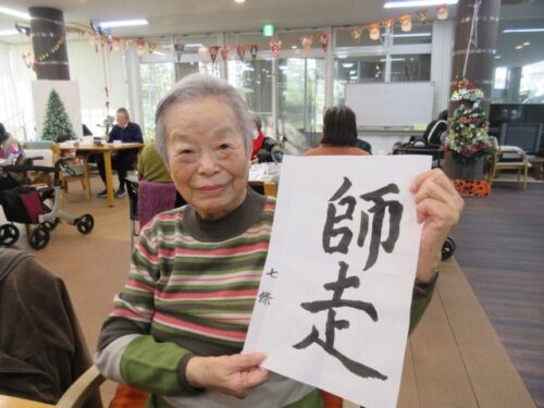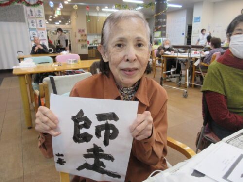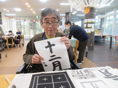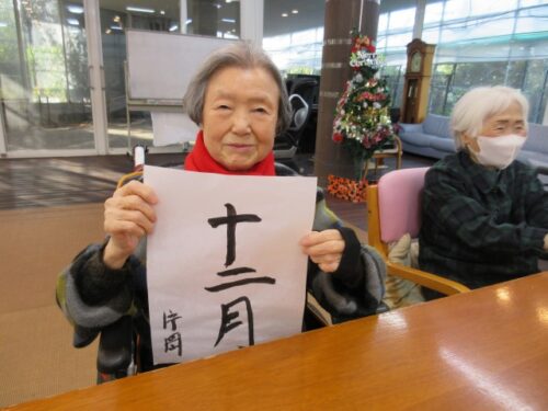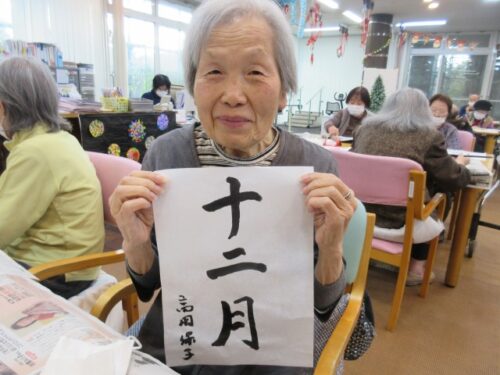 先日もご紹介しましたが、12月も『お習字』の日がありましたので、皆様の上手な作品を紹介していきたいと思います。