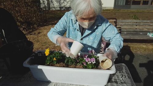 園芸が趣味というご入居者様からのアドバイスも頂きつつ、