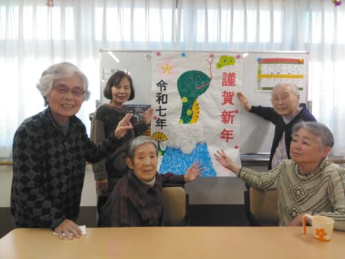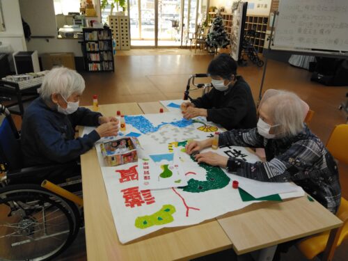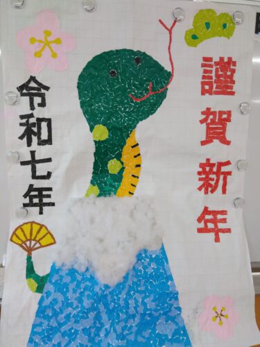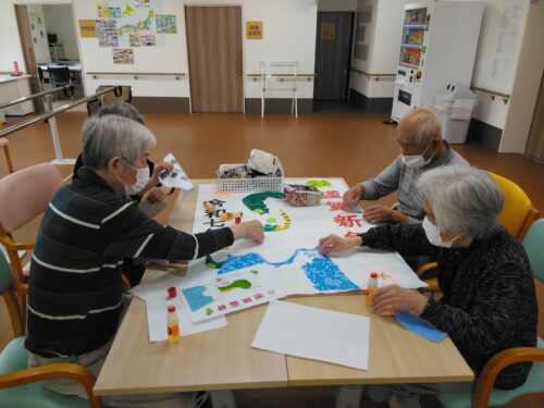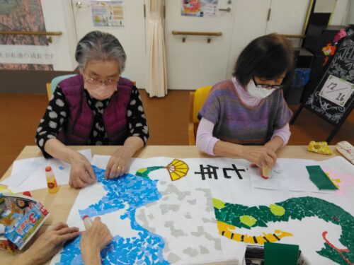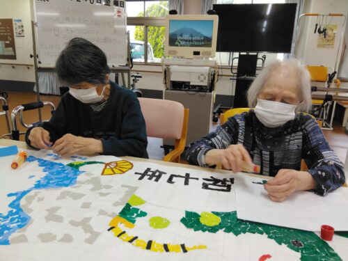 入居者様が、毎日コツコツとちぎり絵でポスターを作成しました。