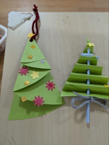 クリスマス制作第3段の色んなクリスマスツリー🌲を画用紙で作りました✨