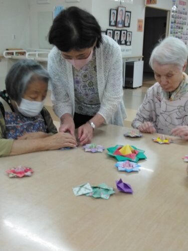 自分の階に戻って早速折り紙を出してきた入居者様も見えました。