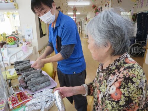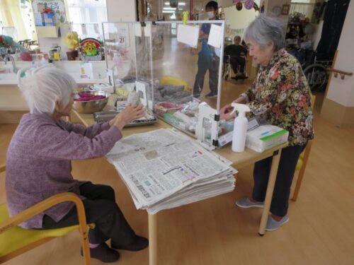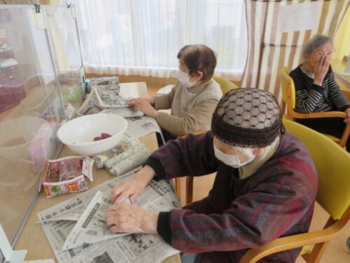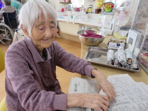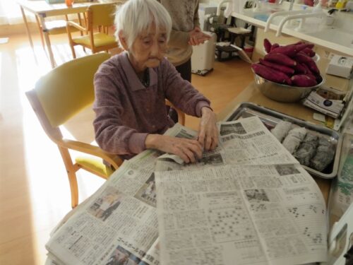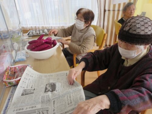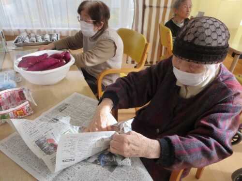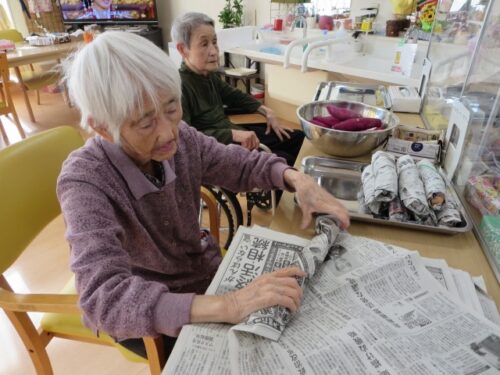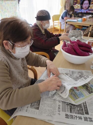 皆でお芋を新聞紙に包んでいきますよ~🍠🍠