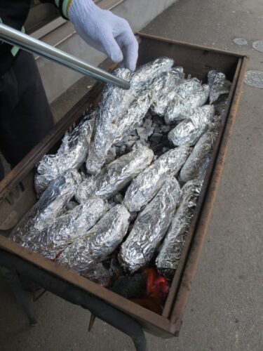 あっという間にたくさんのお芋を新聞紙に包んでいただきました
