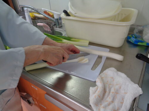 鈴木ナースが慣れた手つきで長ネギを切って下さっています❣