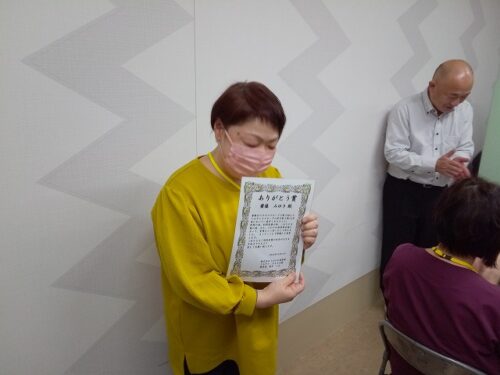 さわやかこおりやま館 職員会議🖊☆さわやかこおりやま館 2024-12-19 2024-12-17 こんにちは、さわやかこおりやま館です(^▽^)/ 先日12月度職員会議が行なわれました🖊 職員会議では毎月表彰が行なわれます✨ 今月表彰されたご入居者様と職員の📸です(o^―^o) 担当:千葉