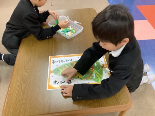 不規則に切られたパーツを合わせて、絵を完成させます😁