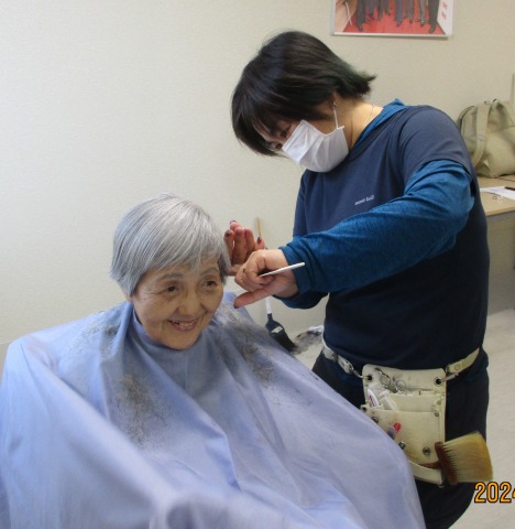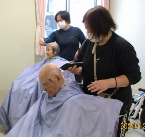 月1回の床屋さんは、ご入居者様皆様、お待ちかねです!