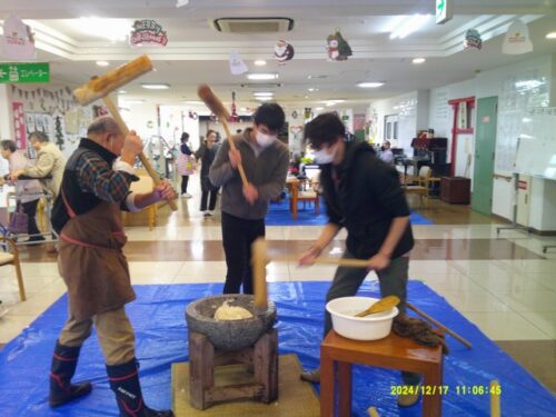さわやか直方館 もちつき②😊 2024-12-20 2024-12-18 こんにちは🌈直方館です🎈 前回の続きで、もちつきの模様をお届けします😊 デイサービスの皆さんや愛の家の方も一緒に たくさんのおもちが出来ました💙 担当:おおくぼ