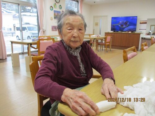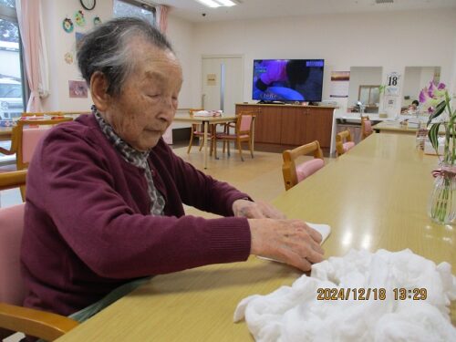 食後には、しっかり手指消毒をしてからおしぼりたたみを手伝ってくださいました☆