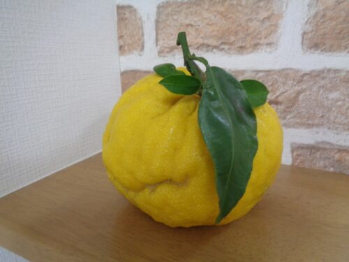 大きな柚子。「鬼柚子と言うんだよ」と教えていただきみんなで香りを楽しみました。