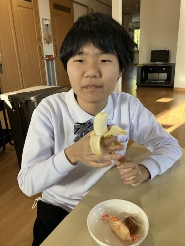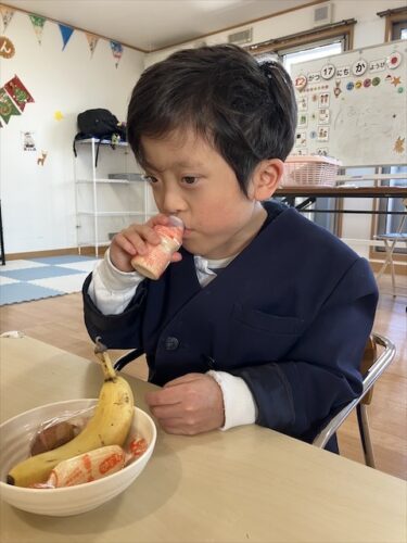 お知らせして おやつに果物や身体に優しい飲み物を付けています☺️