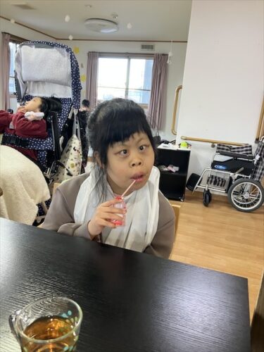 自分でヤクルトを手に持って上手に飲まれています☺️